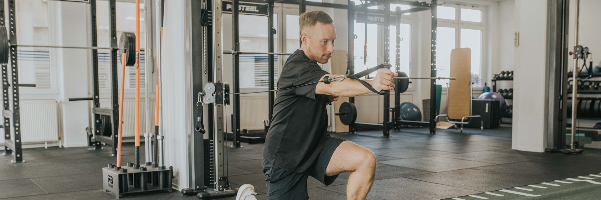 Unter physiotherapeutischer Betreuung trainieren Sie an modernen Geräten – mit Fokus auf Kraft, Stabilität und Beweglichkeit.
